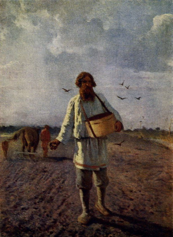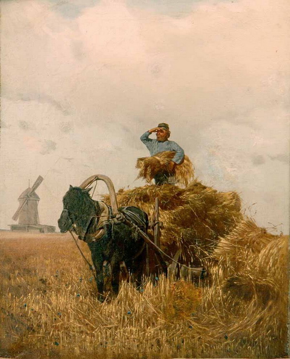 Вековечна дума крестьянина о хлебе. Думами об урожае окружены все сельские праздники. В большинстве простонародных примет, поверий, обычаев и сказаний слышится явственный отголосок этих чутких заповедных дум, пускающих ростки еще до засева зерна, колосящихся вместе с выбегающими на свет Божий из сердца Матери-Сырой-Земли всходами, зацветающих - при взгляде на первый выметнувшийся колос. Нет конца этим думкам-думушкам: что ни день - растут они, гонят сон от усталых очей пахаря, приводят к его жесткому изголовью тревогу за тревогою. Этими думами засеяна вся жизнь мужика-деревенщины - что твое поле чистое. Зовет народная песня вернуться на белый свет весну - молит-заклинает ее, чтобы пришла она - красная - «со светлою радостью, с великою милостью: с колосом тяжелым, с корнем глубоким, с хлебами обильными».