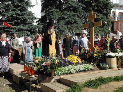 На другой день после Божественной Литургии я вышел из храма и увидел, что у его могилки совершается лития; ее возглавил один из насельников Троице-Сергиевой Лавры. Около могилки собралось довольно много христиан, в основном жителей Сергиева Посада, многие из них наверняка лично знали о.Кирилла, беседовали с ним, брали у него благословение на добрые дела, советовались с ним о своих житейских проблемах, просили его помолиться о своих детках и внуках.
