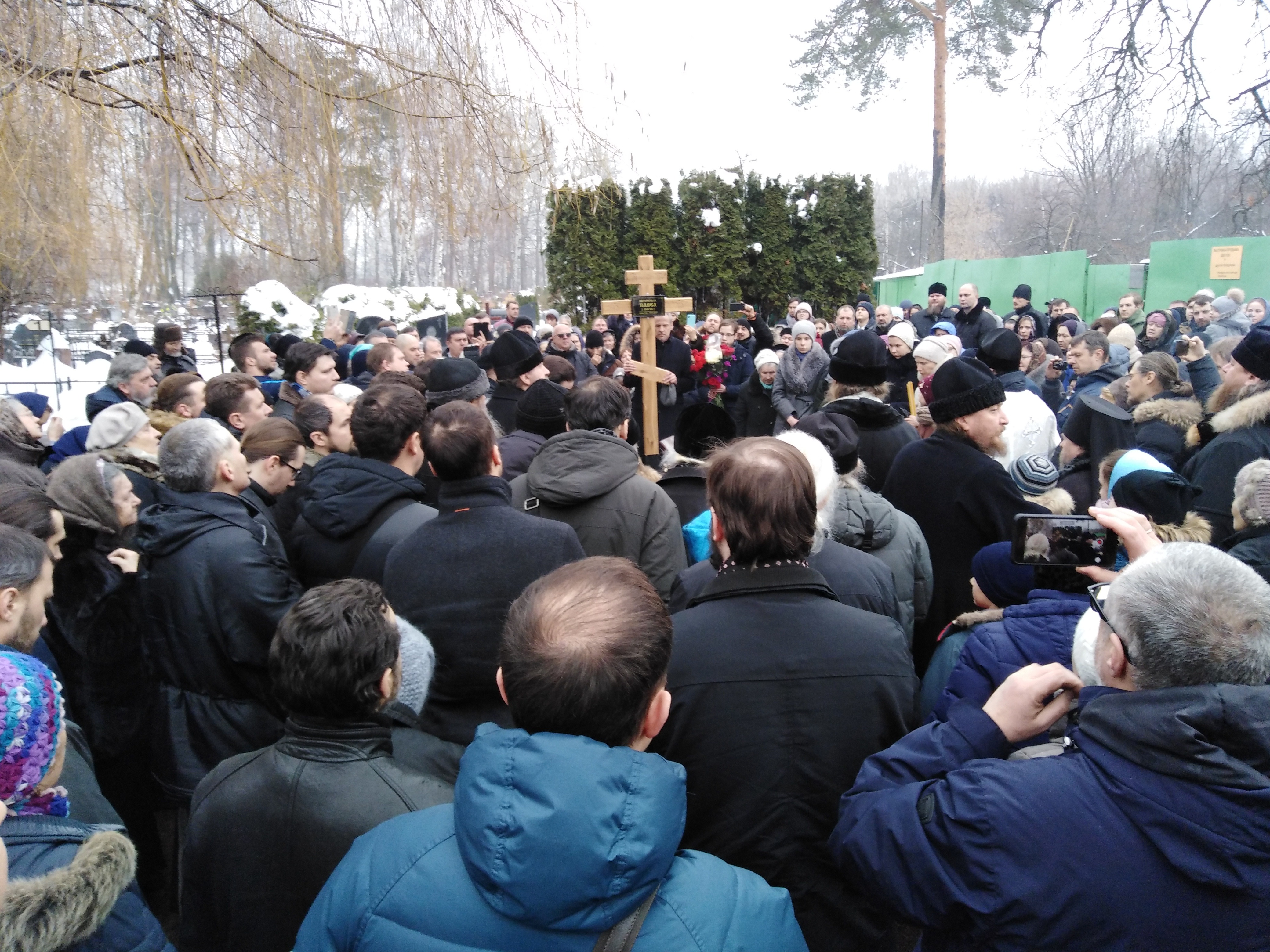 Заказной автобус отвёз нас на Леоновское кладбище. По дороге у Трех Вокзалов было много пробок, поэтому приехали не к самому началу чина погребения. Молились сначала сразу за воротами, а потом уже у самой могилы. Конечно, в жизни видел достаточно многолюдные похороны. Море народа видел в Ноябре 1995 года на похоронах Владыки Иоанна (Снычева). Не в таком, конечно, масштабе было сейчас, но на погребении других духовных лиц такого стечения народу мне видеть ни разу не довелось, как тут на похоронах в общем-то «простого» Священника…