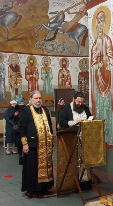 По вторникам в храме совершается молебен с чтением канона преподобному юродивому Гавриилу Ургебадзе, причем, русских больше, чем грузин, приходит на этот молебен, так подвижник благочестия очень почитаем. О.Кирилл сослужил на молебне, по приглашению о. Кахабера. Канон читался попеременно: одна песнь на русском языке, другая – на грузинском. Евангелие также сначала читалось на грузинском, потом на русском языке. На ектенье «Спаси Боже люди Твоя» поминались многие святые, в т.ч. грузинские - цари, мученики, преподобные. Особенно запомнились сто тысяч мучеников от агагарян умученных, и 6 тысяч монахов, погибших в монастыре Давыда Гареджийского. По окончании молебна все прикладывались к частице мощей прп. Гавриила на его иконе, было помазание и окропление святой водой. По обычаю, раздавали всем молящимся продукты – в память о том, как это всегда делал преподобный.