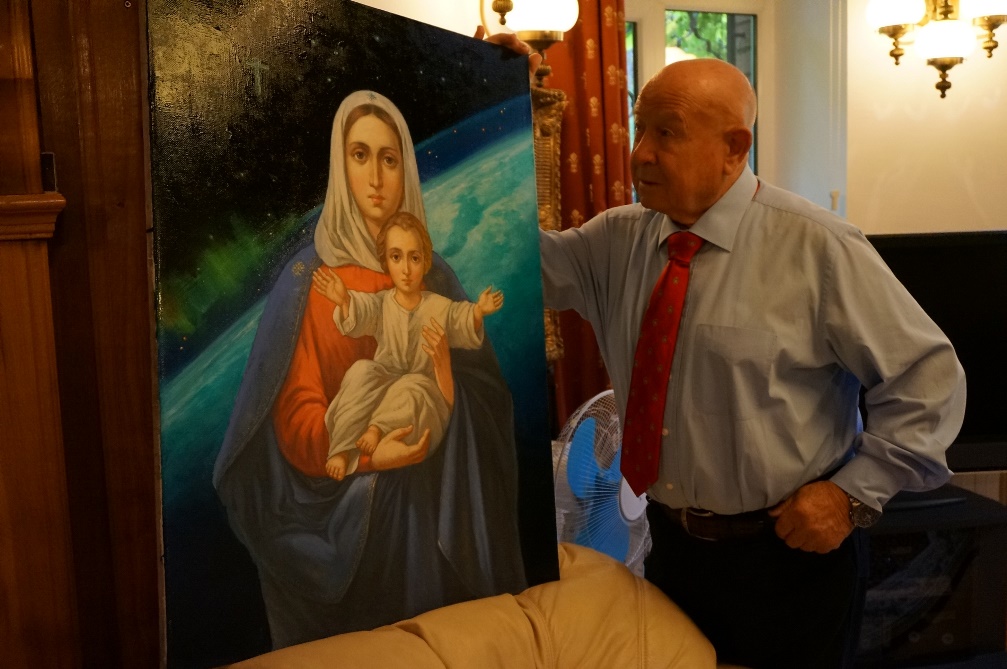 И тут я случайно увидел новость, что где-то проходит выставка живописи Алексея Архиповича Леонова. Я посмотрел в интернете его работы и открыл для себя яркого художника. Он имел художественное призвание, с детства рисовал везде и всегда. Тогда меня осенила мысль: а почему бы не попросить Алексея Архиповича написать образ Божией Матери для Байконура? Кому, как не ему написать первый образ для космонавтов?