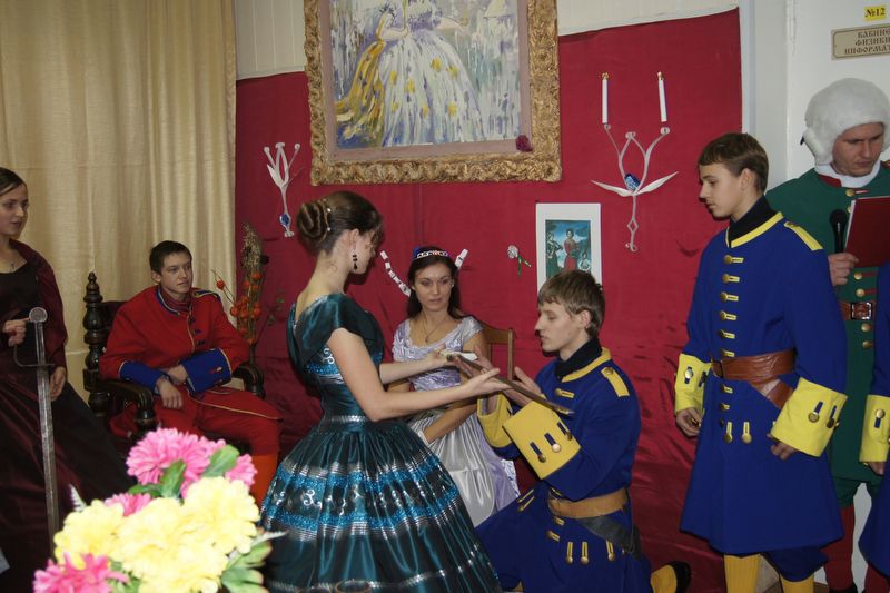 Просторный школьный холл превращается то в физкультурный зал, то в бальную залу. Еще тут проходят еженедельные общие линейки, где разные классы передают друг другу дежурство, отчитывают нарушителей — нелицеприятно, но и без коллективного советского «клеймления»; а директор и учителя сообщают важные новости.
