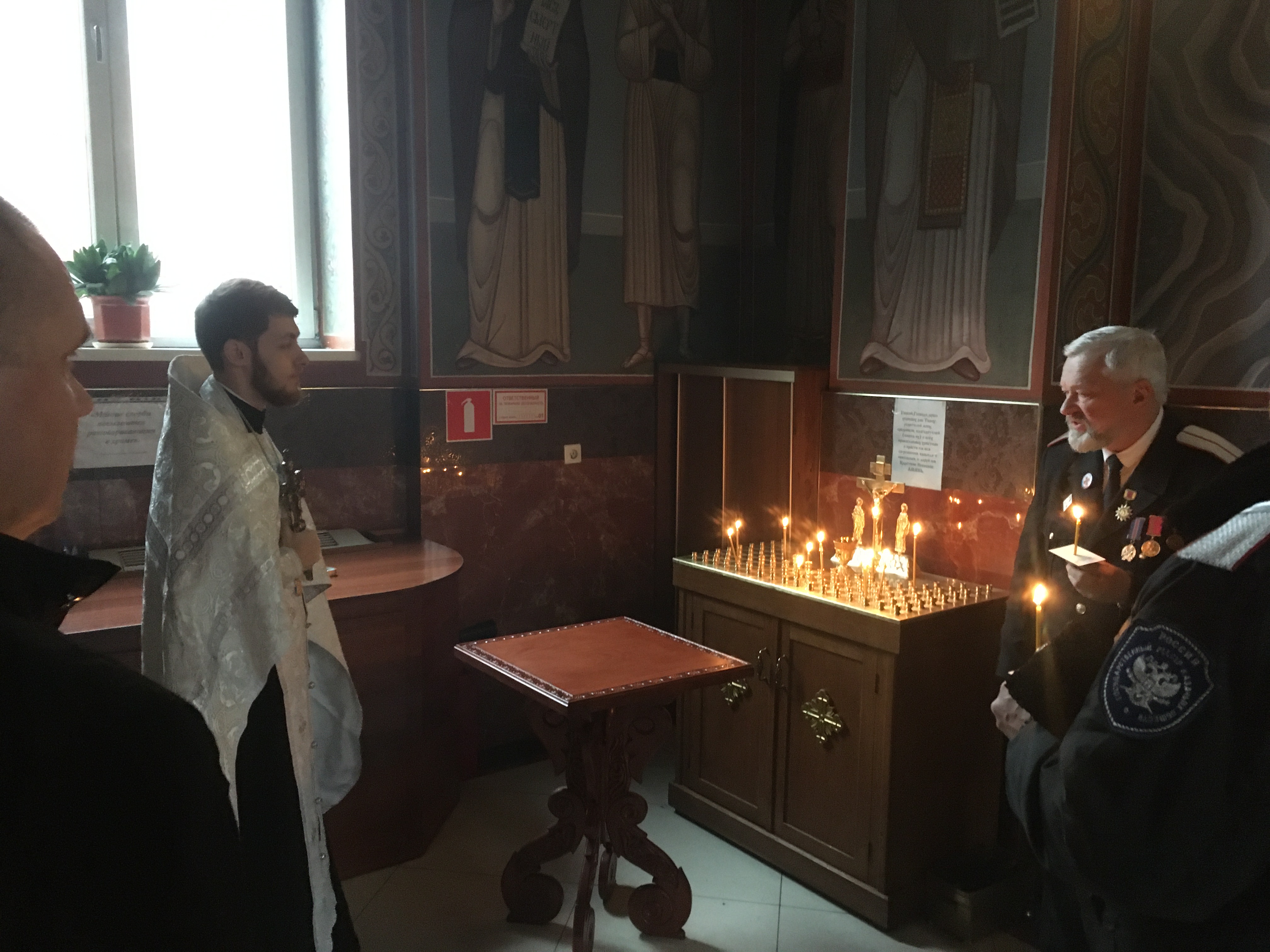 В Свято-Успенском соборе г. Новороссийска, который находится рядом с кладбищем, где покоится этот замечательный сын Отечества, клирик собора, иерей Александр Смольников совершил литию, на которой присутствовали председатель «Творческого союза иконописцев» имени князя Е.Н.Трубецкого С.А.Мачигина, зам. атамана Екатеринодарского отдела ККВ А.А.Соловьёв, командир казачьей сотни Константиновского ХКО Новороссийска А.Н.Кобин, казаки общества секретарь Новороссийского отделения Общества развития русского исторического просвещения «Двуглавый Орёл» В.Е.Алексеев и другие новороссийцы.