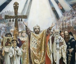 Снова перед нами загадка. Как себе представить, что князь, орудуя, к тому же, не мечем, а топором "с поворозою" т.е. петлей на рукояти, прорубившись через окружавший его строй (или толпу) врагов, затем снова сквозь них "возвращается на исходное положение", чтобы повторить это снова и снова! Здесь приходит на ум сравнение с Западной Европой, где такое же, дословное описание подвига выдающегося воителя является мыслимым пределом воинской доблести. Однако там это выглядело иначе. Рыцарь, выбив копьем из седла противника (или одолев его в поединке другим оружием), рассеивал его свиту, не имевшую права по своему статусу (да и реальной возможности) с ним сражаться на равных, и, таким образом, оказывался в тылу вражеского боевого порядка, представлявшего собой линию рыцарских "копий". Не видя более перед собой равного противника, он возвращался назад, чтобы оказаться перед лицом нового соперника - нечто подобное современным спортивным турнирам, организованным по олимпийской системе "на выбывание". Нечто подобное видим мы и в описании битвы при Шумске в 1231 г., когда Даниил Галицкий, победив очередного противника, будучи окружен вражескими пешими слугами, озирается и не видит, с кем бы он мог еще сразиться.