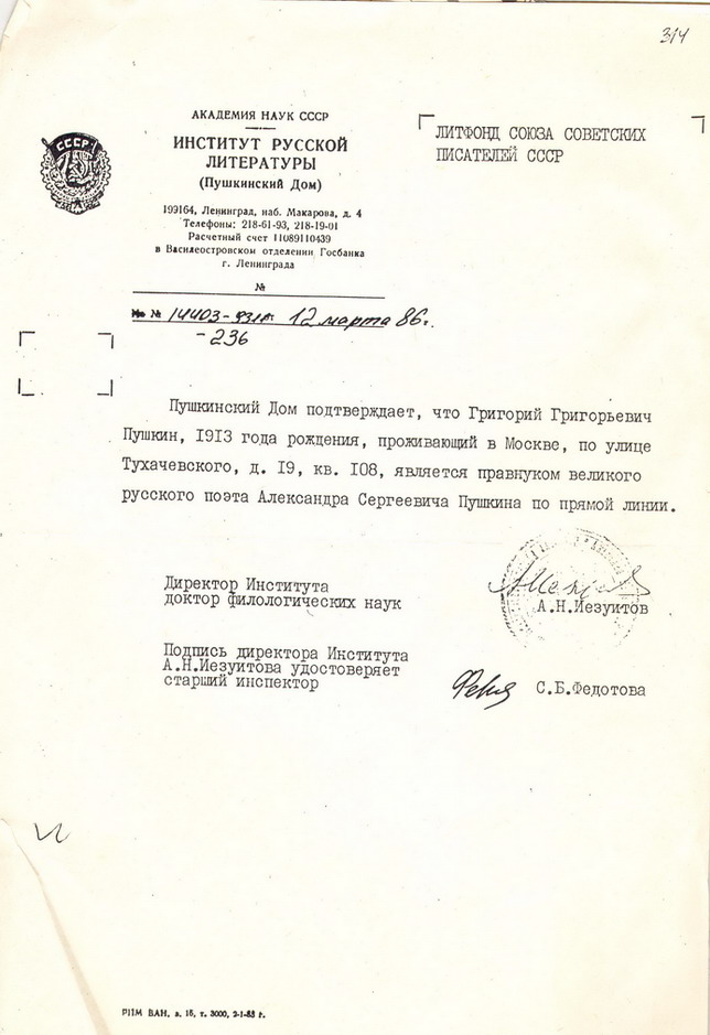 Удивительным образом эта по всем статьям незаурядная даже для фронта история получила неожиданное продолжение, для чего придётся переместиться в 1965 год, когда после долгого перерыва праздновалась 20-я годовщина Победы. В Центральном Доме Литераторов, куда на торжества был приглашён и Григорий Григорьевич, присутствовало и несколько иностранных делегаций. После пары тостов, один из зарубежных гостей вдруг стал расспрашивать всех о потомке Пушкина и его, слегка оторопевшего, подвели к... Пушкину. Немец оказался внуком того самого незадачливого филолога Карла Мюллера, который, благодаря своим знаниям русской литературы остался жив и благополучно вернулся домой.
