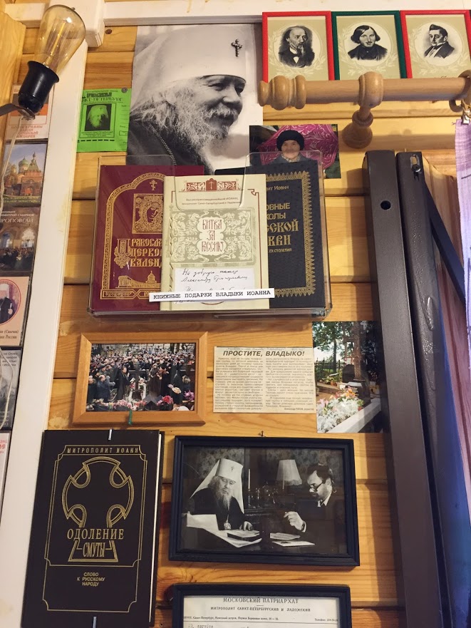 Подходим к уголку, посвященному митрополиту Иоанну (Снычеву), вклад которого в становление газеты «Православный Санкт-Петербург», главного детища хозяина, трудно переоценить. Александр Григорьевич вспоминает: «Теперь я понимаю, что владыка Иоанн увидел во мне человека, пусть еще малоцерковного, не разбирающегося толком в Православии, но того, кто сумеет преодолеть все препоны, обойдет преграды и добьётся издания в Петербурге православной газеты. Владыка отправил меня в первый раз в Иерусалим в 1995 году. Это было величайшее событие для меня. Пережил там столько чудес, никогда в жизни ничего подобного не испытывал. Что-то в душе произошло, усилилась и укрепилась вера.