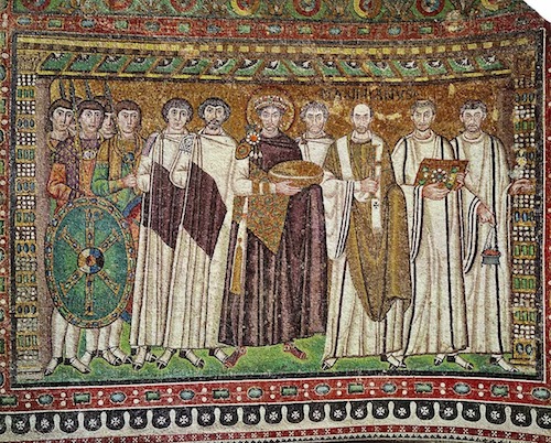 Прижизненное изображение Святого Императора Юстиниана Великого в окружении свиты. Храм Святого Мученика Виталия Медиоланского в Равенне. Мозаика VI столетия