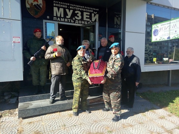 7 октября делегация прибыла в Луганск и в музее «Память Донбасса», под эскортом почетного караула солдат комендантского полка Народной милиции ЛНР, состоялась церемония передачи останков воина. На временное хранение останки героя приняли сотрудники музея во главе с председателем правления Луганского военно-исторического объединения "Память Донбасса" Анатолием Феоктистовым.