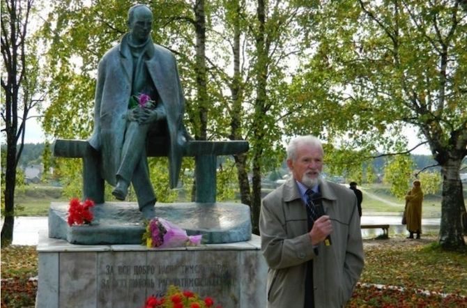 Поэт на берегу реки. Сидит на бронзовой скамье, ну как живой, с чуть проступающим раздумьем на лице и взглядом глаз, который говорит: «Я здесь, как на земле обетованной. Среди своих. Что меня соединяет с Божьим миром? Незабываемые узы братства и тайный мир, куда меня зовут, ушедшие в него».