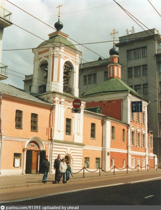 В этом храме размещались различные организации, а потом ЦК ВЛКСМ. Рядом дом – эта же организация занимала его. Храм и дом церковный. Но тут всё, конечно, было перестроено. Живопись уничтожена, алтари раскрыты. Вот осталось только вверху: живопись, которую мы промыли, укрепили. Остальное всё своими силами восстанавливали. У нас иконописная школа. Дети обучаются и взрослые. Они же расписывали храм и всё остальное: новые иконы. Старые иконы, которые приходят, отреставрировали наши иконописцы.