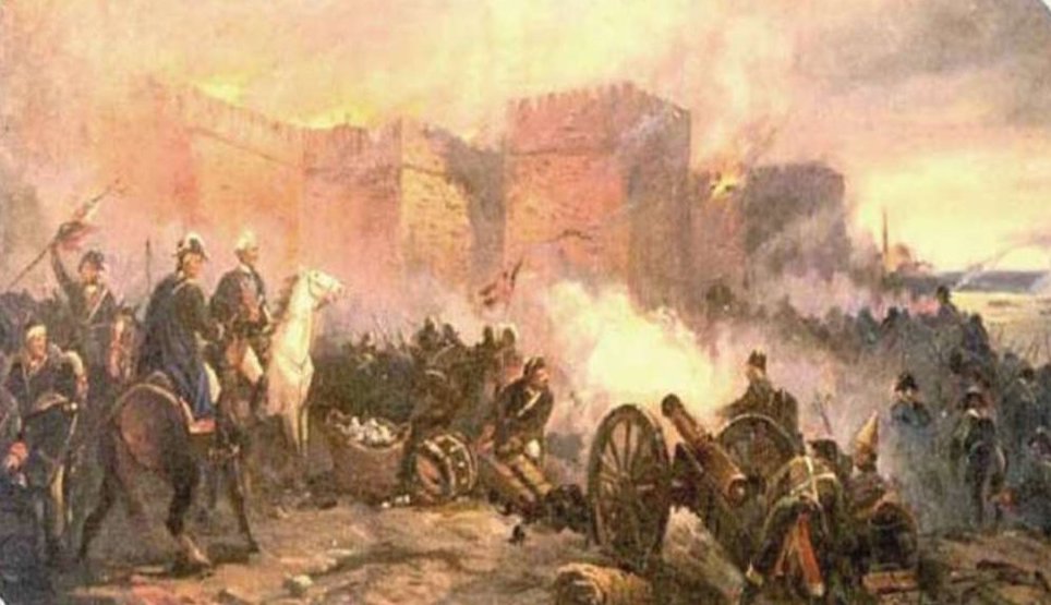 Главный удар Суворов направлял на сильно укрепленные Килийские ворота, где турки менее всего ожидали нападения. Суворов назначил день штурма на 11 декабря. Пятьсот орудий с острова Сулим и флотилии де Рибаса целый день громили крепость. В 5 час. 30 мин утра 30 тыс. солдат незаметно приблизившись к крепости на 300 шагов, бросились на штурм Измаила. Исполняя с удивительной быстротой все предписанное Суворовым, солдаты прапорщика Гагарина по приставным лестницам взобрались на вал и овладели бастионом. Главный удар был нанесен по Килийским воротам. Здесь русские войска вел Кутузов. К 8 часам утра стены крепости были захвачены и бой был перенесен в центр Измаила.[20] В ходе штурма было убито 26 тыс. турок. Потери русских - 1815 убитых и 2445 раненых.[21] Измаил был не просто крепостью: он был символом. Сын Авраама от наложницы Исмаил (в другом произношении – Измаил - прим. авт.) является предком тюркских народов. И вот Измаил пал. Не с падения ли Измаила и началось падение Турецкой империи?
