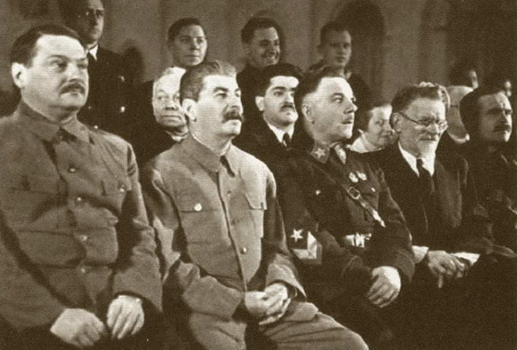 Параллельно этому русская история возвращается и в искусство, где уже не боятся показывать образы дореволюционных защитников русской земли, в т.ч. «классовых врагов», «эксплуататоров». Некогда снимавший революционную пропаганду С.Эйзенштейн в 1938 г. создаёт ставший мировой классикой фильм о князе-полководце «Александр Невский» (за который получает Сталинскую премию). В 1939 г. на экранах советских кинотеатров с таким же триумфом как и «Александр Невский» прошёл показ фильма Пудовкина и Доллера «Минин и Пожарский». Оба прославляемых главных героя фильма — купец и князь — классово чуждые пролетариату элементы. Внеклассовый подход не случаен: по новой Конституции СССР 1936 г. в советском обществе нет враждебных классов и, соответственно, для всех граждан открыт путь к участию в общественно-политической жизни страны. Документы показывают, что именно Сталин при обсуждении новой Конституции добился изъятия положений об ограничении политических прав по классовому признаку. В канун великой войны советское общество всё более солидаризировалось.