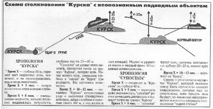 Схема столкновения «КУРСКА», разработанная автором по первым сообщениям о его гибели. 2000 год.