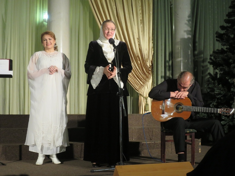 Трудно выразить все чувства, переполнявшие во время вечера многих присутствующих. Зал был полон. Как и полагается, выступления предварила совместная молитва, которую возглавил протоиерей Владимир Сергиенко. Затем Болдышева Ирина Валентиновна, руководитель хора во имя преподобного Иоанна Дамаскина, рассказала о том, какую искреннюю заботу имели Великая Княгиня Елизавета Федоровна и ее супруг Великий Князь Сергей Александрович о том, чтобы соединились на веки, полюбившие друг друга Ники и Аликс - будущие Государь и Государыня. Хор исполнил две песни Ирины Болдышевой: "Немногим" на слова Сергея Бехтеева и "Научи меня Боже любить..." на текст стихотворения "Молитва" Великого Князя Константина Романова.