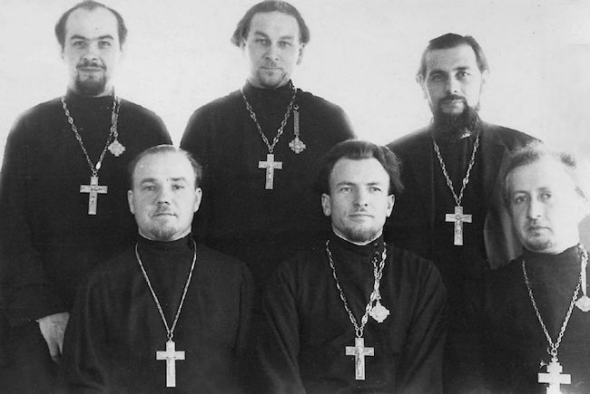 1. Верхний ряд: о. Василий Лесняк, о. Михаил Сечейко, о. Василий Стоиков. Нижний ряд: о. Владимир Шуста, о. Анатолий Мороз и о. Вячеслав Шоломицкий. В 1960-е годы на встрече выпускников СПб Д.А.