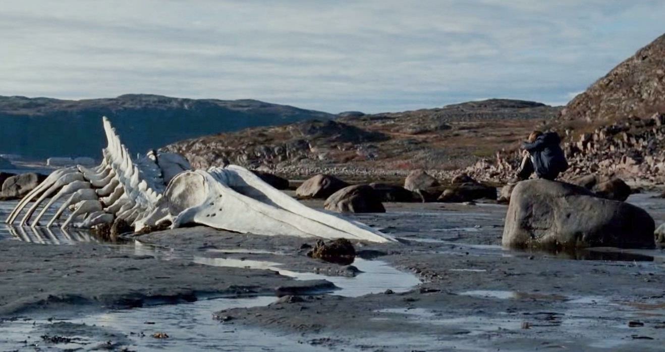 2. В самом начале фильма зрителям показываются леденящие душу пейзажи Кольского полуострова (место, где проходили съёмки), а потом камера медленно наводит объектив на скелет какого-то морского млекопитающего (предположительно кита), который в дальнейшем еще не раз фигурирует в фильме. Попробуйте порассуждать почему режиссёр в своём фильме использует именно этот образ-символ и почему именно скелет кита так важен, а не само животное? Какая политическая подоплёка читается в этом образе?