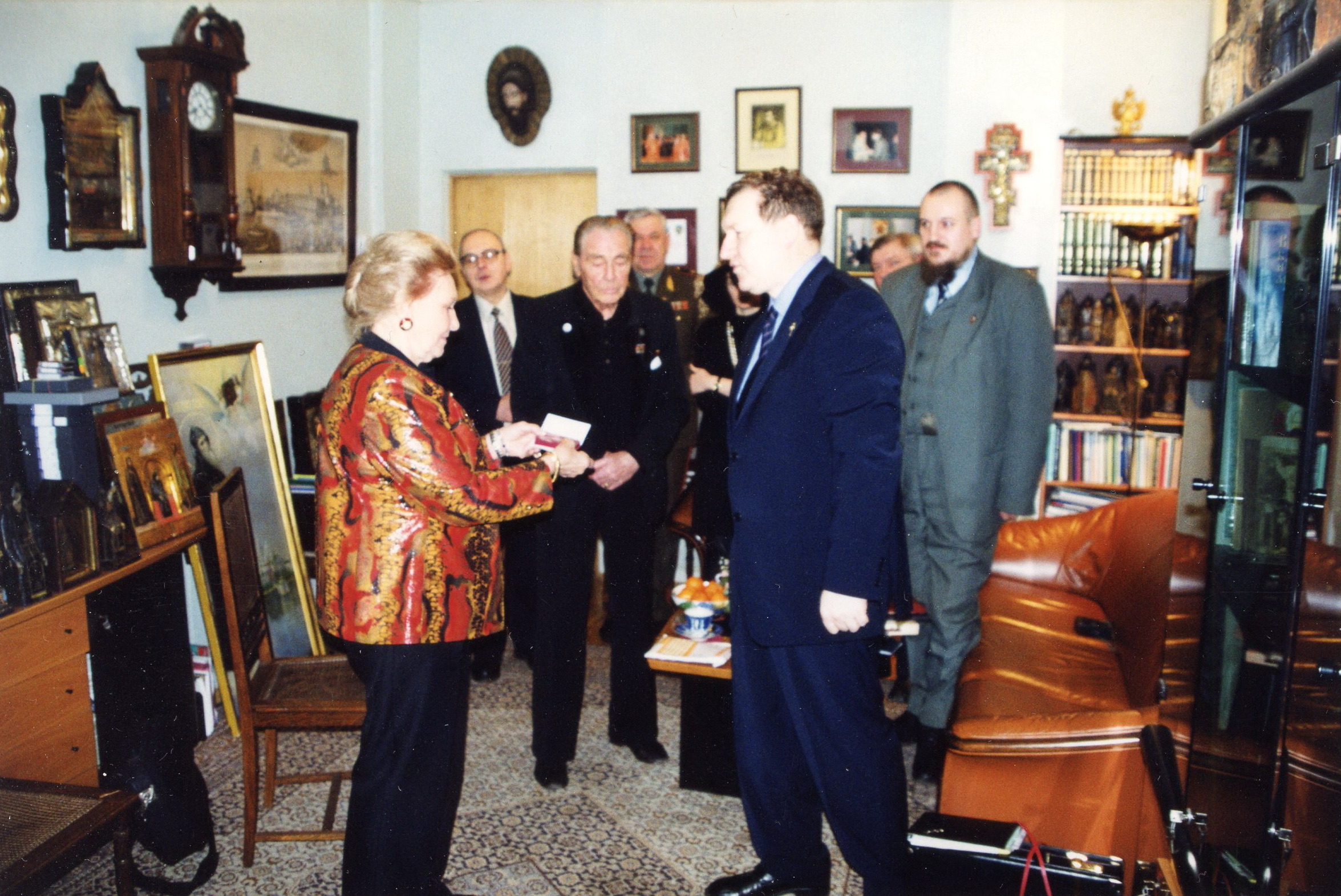О.Н.К-Р: Хочу теперь сказать о нашем Фонде имени Ея Императорского Высочества Великой Княгини Ольги Александровны. Сейчас наше московское отделение располагается в Новоспасском монастыре — родовой усыпальнице бояр Романовых, что особенно важно для нас. Позвольте передать Вам прошение.