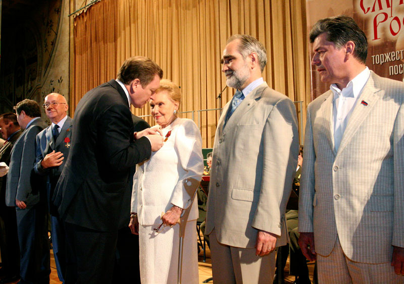 Как я отмечал выше, моя уверенность, что тогда Ольге Николаевне вручалась медаль «Всенародное Покаяние», косвенно основывается на снимке, сделанном несколько лет спустя — уже в «нулевые», где видно, что та памятная медаль уже находится на груди О.Н.Куликовской-Романовой.