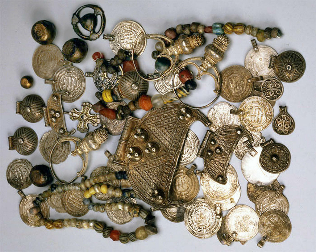 10. Вещи из клада 1993 г., найденного на Центральном селище в Гнездове. Фото С. Авдусиной и А.М. Красниковой. Хранится в Москве, в ГИМе