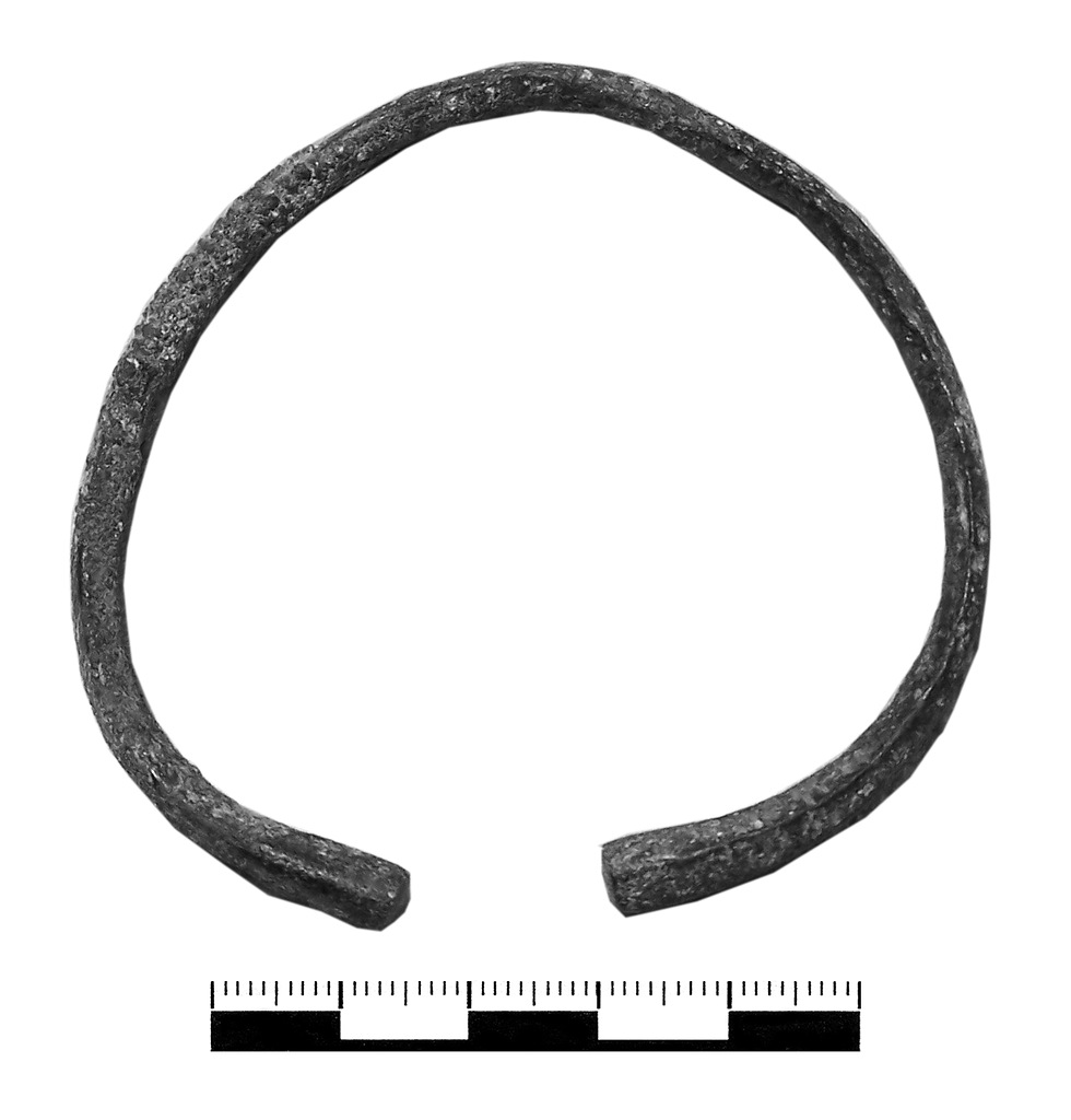 Он почти круглый с горбинкой, или небольшим переломом в стороне противоположной от концов. Браслет около 7 сантиметров в диаметре, в сечении близок к квадрату стоящему на ребре. Раздвинутые на 1,5 сантиметра друг от друга концы слегка утолщены. Аналогии данному браслету имеются среди материалов Тушемлинской культуры VI – VII веков. Нынешний хозяин сфотографированного браслета (также частное лицо) сообщил, что хотел приобрести все три браслета, которые по сообщению продавца были найдены в одном месте, но ему был продан только один. Он также добавил, из других, не проданных ему браслетов, один был больше проданного, а другой меньше.