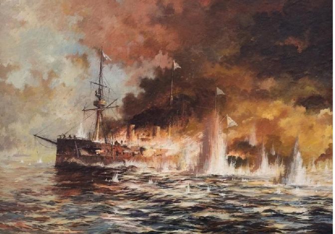 И уровень японского военно-морского искусства в этих боях − совершенно одинаковый: при абсолютном, тотальном превосходстве японцев − русский крейсер наносит тяжелые повреждения противнику, не дает себя потопить, и сам выходит из боя. Сам спасает команду, и сам, открыв кингстоны, уходит в бессмертие под Андреевским флагом.