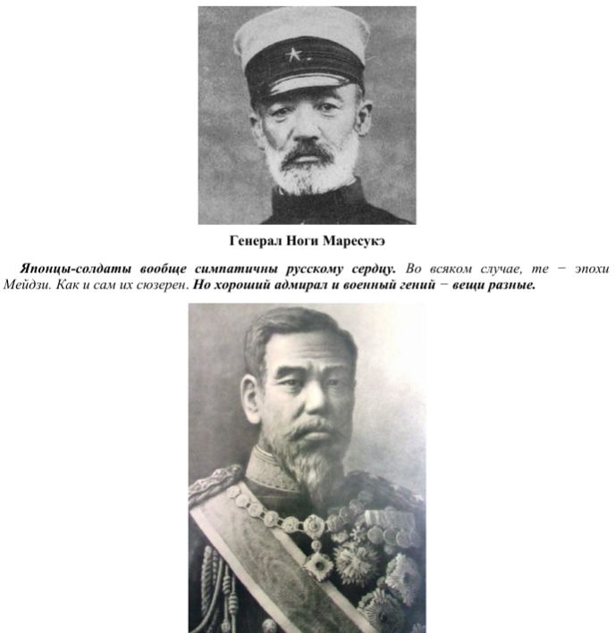 Также симпатичен мне “порт-артурский” генерал Ноги Маресукэ, не жалевший ни себя, ни солдат, ни собственных детей в выполнении своего долга перед Императором и Империей.