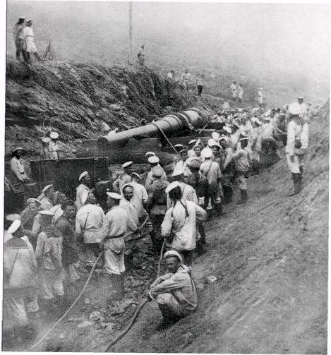 Мы сделали несколько выстрелов из 12-дюймовых пушек, поставив их на упор, но снаряды не долетали и огонь пришлось прекратить.