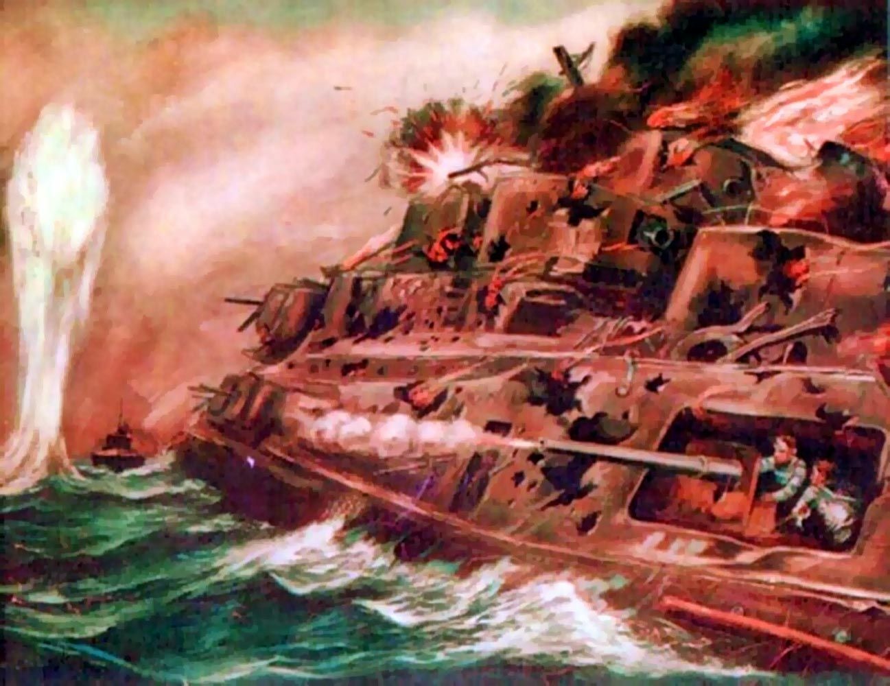 И вот этому обездвиженному и расстрелянному с ходу человеку, уже более чем столетие многоумные мужи, с флотским образованием и неотягченные оным, предъявляют претензии, что он плохо-де маневрировал и стремительно не атаковал. Самих бы на его место!