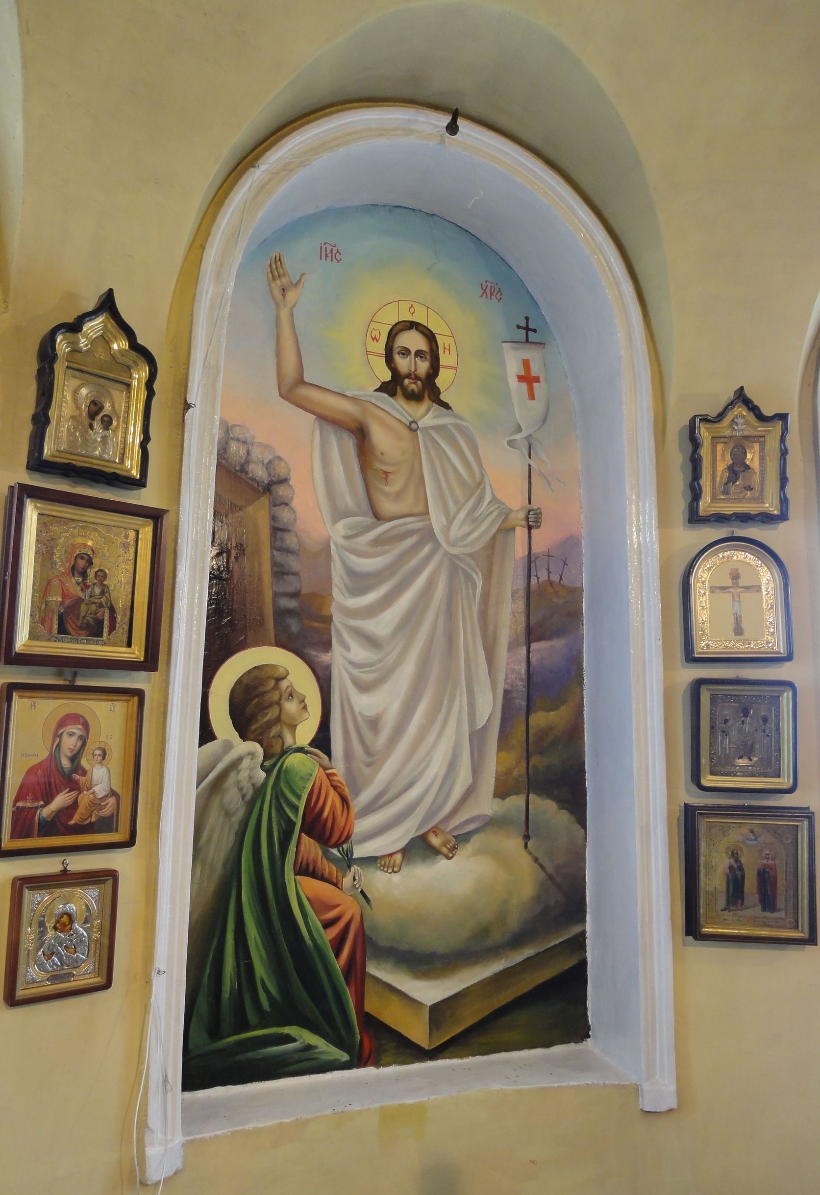 Несколько лет назад настоятель Екатерининской церкви о. Николай благословил Могучева написать образ Воскресения Господня во всю трёхметровую высоту алтарной стены. Художник согласился, но лишь через два года приступил к настенной росписи. Говорит: "Надо было созреть для столь чрезвычайной важности дела".