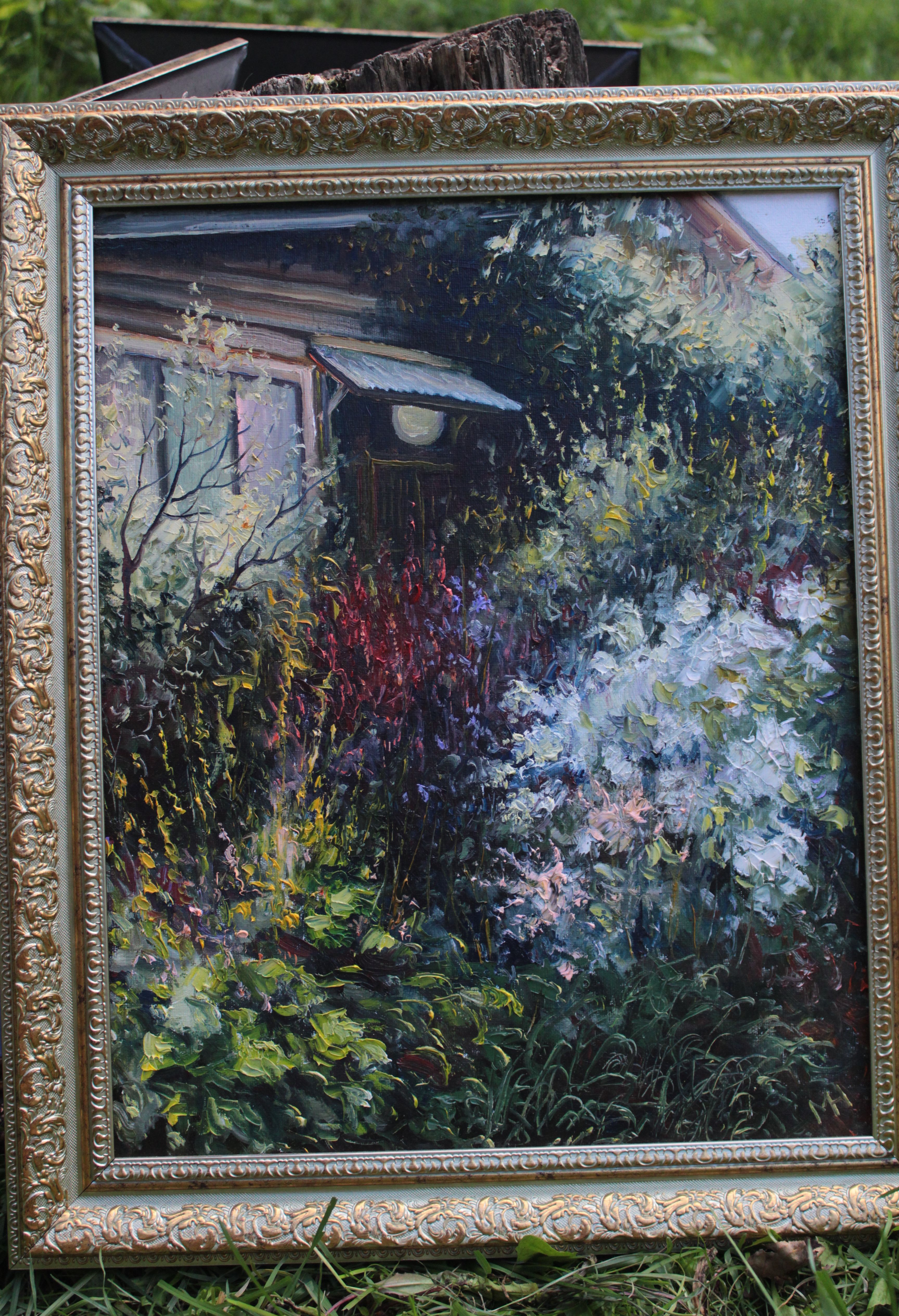 Цветы и цвета симфонии сада музыкальны. Ещё один "регистр" пейзажа - наступающая на сад, почти дремучая тайга. А стоит войти в дом, и вы увидите "солиста" дивного оркестра. Солируют картины хозяина дома - Николая Могучева. Он не пишет свои пейзажи "с натуры", не выходит с мольбертом "на пленэр". В картинах не надо искать "узнаваемости места". Надо, вместе с художником, приблизиться к тайне изображённого пейзажа.