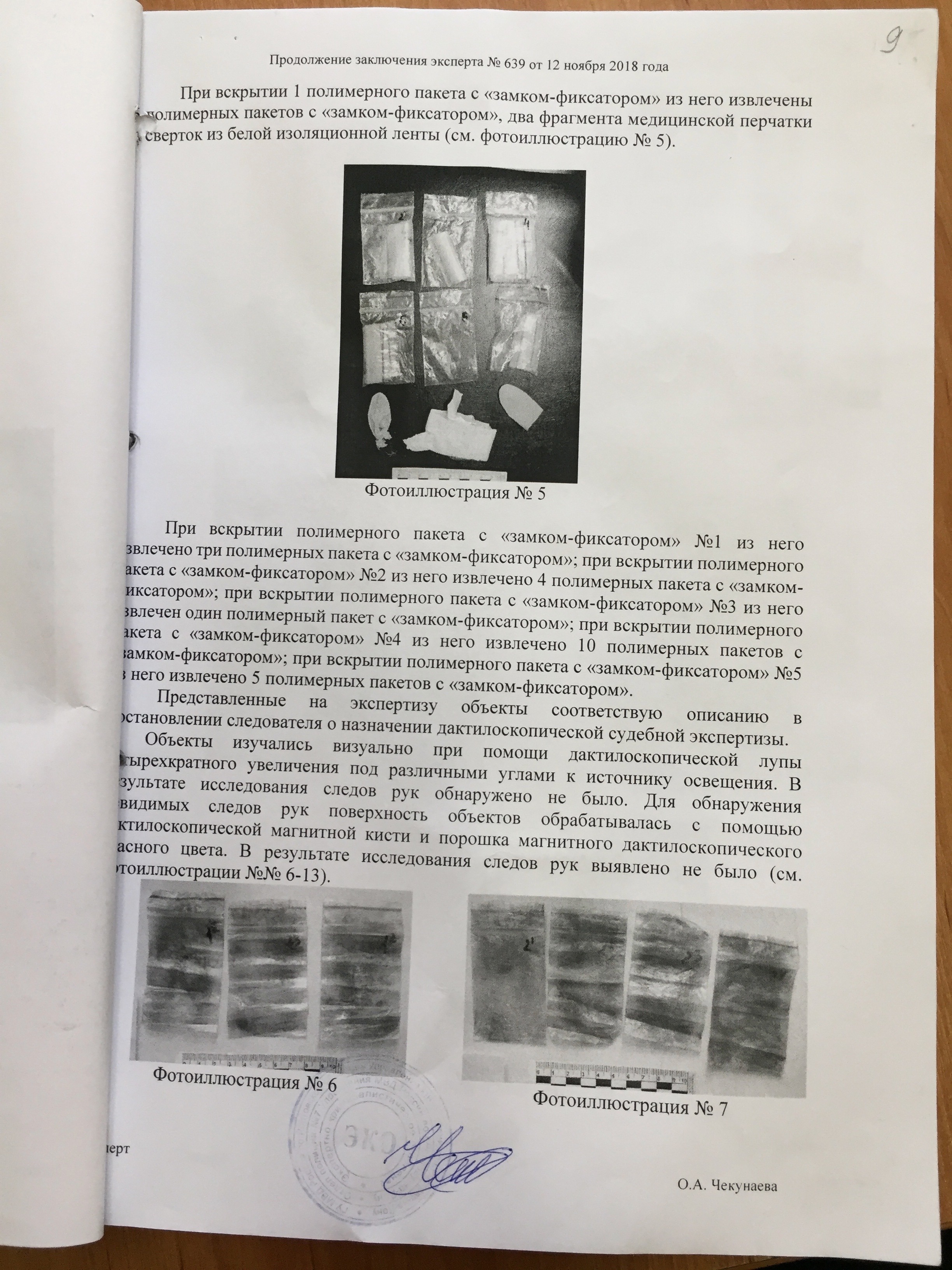 Данный документ привлек внимание стороны защиты еще и потому, что в нем был дан отказ на проведение экспертизы на абсолютно нелогичных основаниях, в связи с тем, что: «…полиэтиленовые пакеты относятся к разряду бытовых предметов общего пользования, на них будет присутствовать материал большого количества фигурантов. Учитывая, что изъятие проводилось сотрудниками без медицинских масок, а также было проведено исследование в ЭКЦ [20.10.2018 г. химическое исследование наркотических средств и психотропных веществ в свертке №4/2556], можно с достоверностью утверждать, что на пакетах будет присутствовать смесь биологического материала от неопределенного круга случайных лиц. В результате на объектах исследования будет получена сложная картина типирования, по которой идентифицировать конкретное лицо не представится возможным, что не позволит ответить на вопросы, поставленные Вами в постановлении». Удивительный ответ для эксперта.