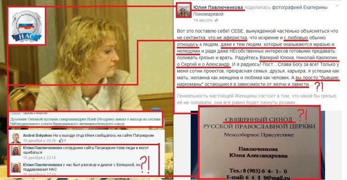 При этом я не раз после сдерживал себя, когда лжесвидетели обвинения Новопашин Н.О., Красильников М.Г., Лушникова Л.И., помимо Павлюченковой Ю.А., ведомые лукавыми гособвинителями и судьей Поповым А.Е. высказывали предположения о том, что я потреблял или потребляю наркотики, когда-то у кого-то лечился, постоянно указывая на Душепопечительский православный центр Московской Патриархии в г. Москве, священника, игумена Анатолия (Берестова). Ведь я помнил о части 4 статьи 14 УПК РФ: «Обвинительный приговор не может быть основан на предположениях». Но в моем случае он только на них и основан!!! Ни о какой презумпции невиновности нет здесь и речи. [Прим. авт. – на дружеском приветственном фото ниже с личной страницы Ю.А. Павлюченковой, президента сектантского НАС, в одной из социальных сетей она в гостях в одном из реабилитационных учреждениях, основанных в прошлом сектантом-неопятидесятником, старшим пастором секты «Исход», спрятавшимся под личиной православного деятеля, Н.О. Новопашиным].