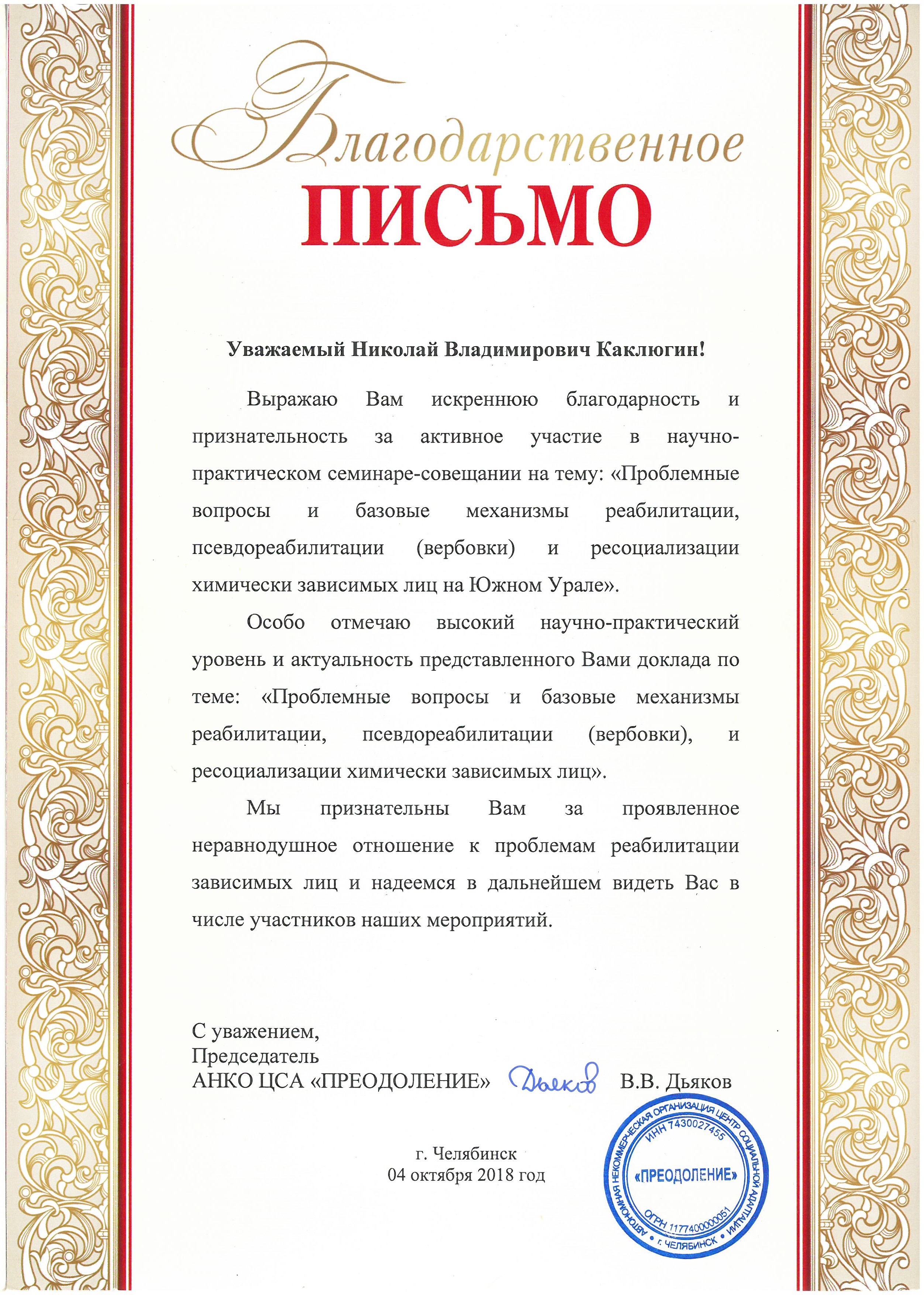 Каклюгина Николая Владимировича председателя регионального отделения Общероссийской общественной организации «Матери против наркотиков» В Краснодарском крае, врача психиатра-нарколога, кандидата медицинских наук, федерального эксперта в сфере совершенствования государственной антинаркотической политики, профилактических программ снижения спроса на наркотики (см. Приложение[ссылка на приложение]по ссылке: https://ruskline.ru/analitika/2019/03/04/rezyume_kaklyugina_nikolaya_vladimirovicha), лечебно-реабилитационных технологий работы с лицами, страдающими различными деструктивными формами зависимого поведения, включая алкоголизм, наркоманию и зависимость от учений тоталитарных деструктивных культов, вербующих адептов в том числе через псевдореабилитационные стационарные учреждения для химически зависимых (см. Приложения [ссылка на приложения – Почетные грамоты, отзывы, характеристики Н.В. Каклюгина, часть из них см. ниже по тексту]), в настоящее время осужденного после инсценировки подброса заранее расфасованных так и не установленными следствием лицами наркотиков по ст. 228 УК РФ, ч. 2 в Пролетарском районном суде г. Ростова-на-Дону, см. краткая апелляционном жалоба в Приложении по ссылке: http://nm-union.ru/bojzapravduisvobodu_nezakonnyjoborotsfabrikovannyhugolovnyhde1334.html; завершается подготовка стороной защиты кассационной жалобы в 4-й Кассационный суд г. Краснодара [на данный момент кассационная жалоба уже подана]. |