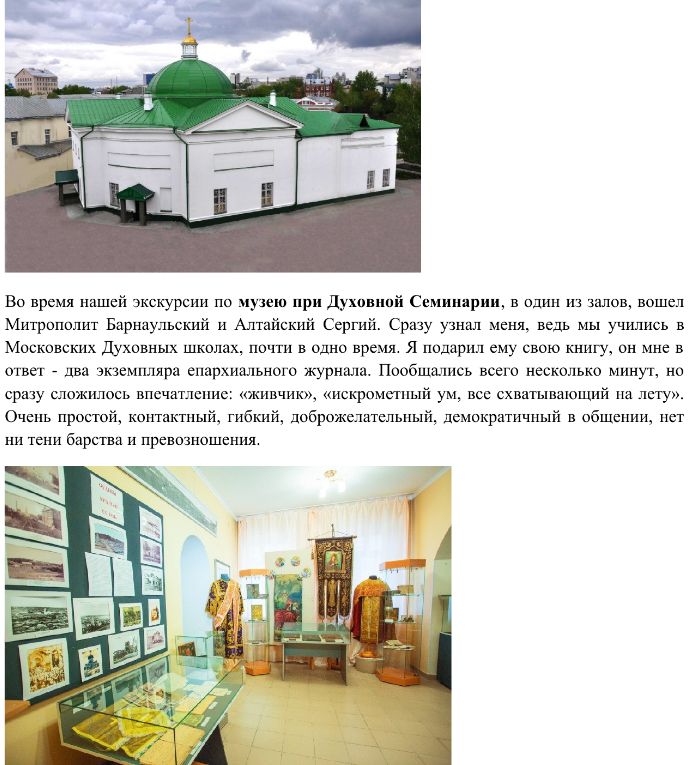 Поднялись на самую высокую точку города у голубого моста на берегу реки Барнаулки, где большими буквами обозначено "Барнаул". Здесь несколько лет назад была восстановлена Предтеченская церковь, а еще раньше был водружен поклонный крест в честь 2000-летия христианства. Гуляя по городу, я, учитывая теплую погоду, солнечный день, вышел в лёгкой осенней куртке. Поздно вечером существенно похолодало. Я переохладился и начались проблемы с бронхами. В течение нескольких десятилетий, несмотря на мои упорные попытки излечиться, это сделать не получается. Наверное, в этом промысел Божий - по словам одного святого отца, монаху полезно немного болеть, это как противодействие взыгранию страстей, узда для них. Недавно я услышал заключение врача-психолога об одном моем знакомце - "изменению не подлежит". С грустью подумал: "Похоже, что и я в медицинском плане изменению не подлежу".