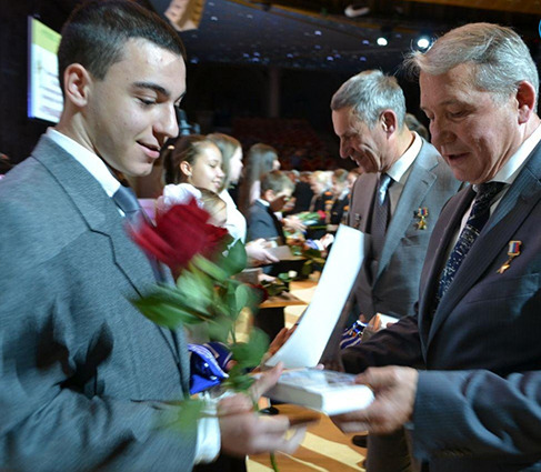 Затем начинается торжественная церемония награждения победителей XVI Международного литературно-художественного конкурса для детей и юношества «Гренадеры, вперед!» «Моя Родина самая лучшая и красивая самая».