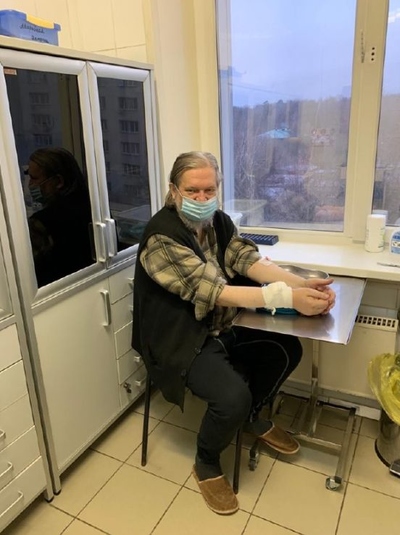 В процедурной. – «Дверь закрывать?» - «Нет не надо». Сижу у окна, из него сифонит. «Немножко нужно потерпеть». Медсестра достает длинную спицу с ватой на конце – анализ на «корону». – «А я совсем недавно сдавал тест» - «Все равно, при поступлении в больницу, нужно сделать» (это уже в третий раз).