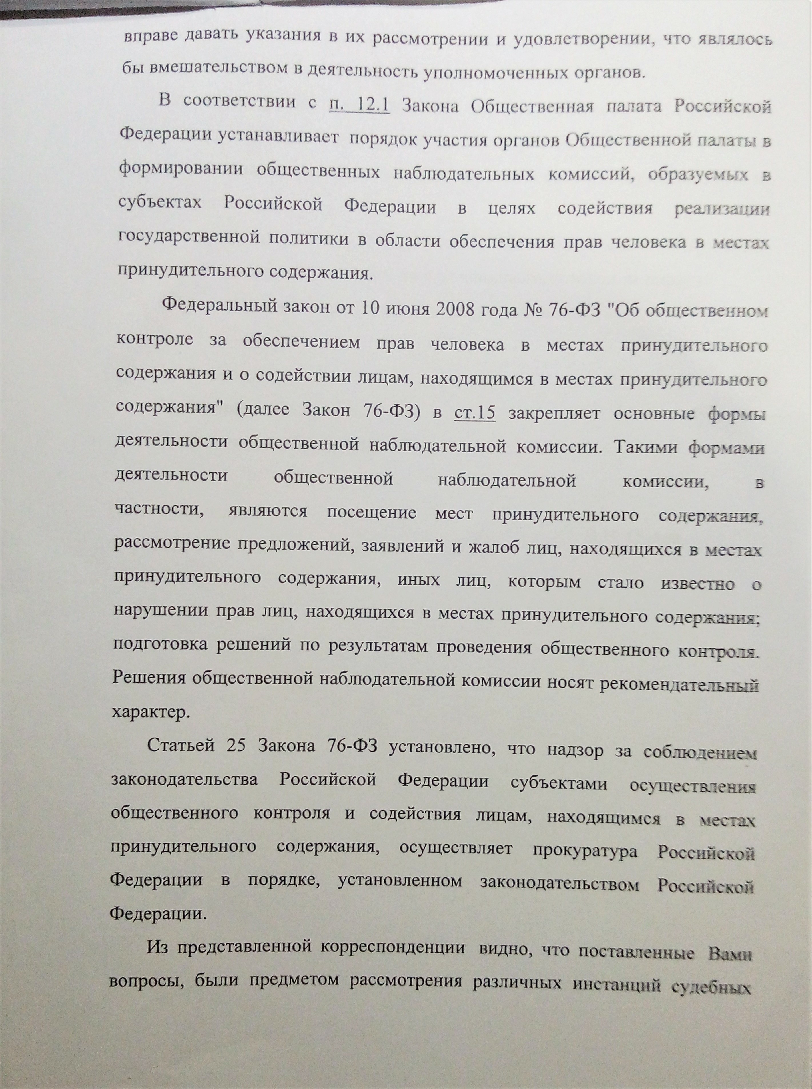 Из вышеразмещенного информационного письма от 28.08.2020 г. начальника отдела по работе с обращениями граждан Общественной палаты РФ следует, что данный отдел не перенаправил всю изложенную в обращении информацию с приложениями в профильные комиссии ОП РФ, в том числе курирующие ОНК, социально-правовую и работу в сфере здравоохранения подсудимых/осужденных, а также деятельность социально-ориентированных некоммерческих организаций в стране, выдачу им грантов и субсидий, попадания в члены ОП РФ адептов нетрадиционных религиозных движений, тоталитарных деструктивных культов (сект), сознательно проигнорировав поясняющие моменты вступления к основному тексту обращения на имя председателя Общественной палаты: «… в рамках невыполнения своих функций со стороны Общественной наблюдательной комиссии Ростовской области, неоднократно игнорировавшей мои обращения о нарушениях моих прав в ФКУ СИЗО-3 ГУ ФСИН России по Ростовской области и ФК ЛПУ МОТБ-19 ФСИН России в г. Ростове-на-Дону, а также с целью анализа и контроля вообще ситуации с общественными организациями, работающими на этом поле, вербующими людей для протестных акций, обращаюсь к Вам, уважаемая Лидия Юрьевна, председателю Общественной Палаты РФ». Это пояснение размещено в части 1.1 опубликованного на «РНЛ» обращения.