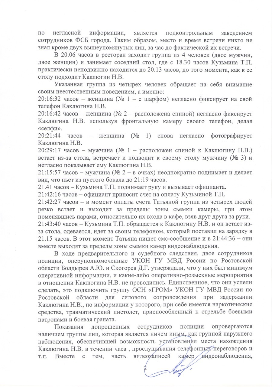 В связи со всем вышеизложенным, а также тем, что за мной была группа наружного наблюдения в последний день моего нахождения на свободе до задержания, 19 октября 2018 года в ресторане «Ялла», куда меня пригласила «подсадная утка» Т.П. Кузьмина, о чем свидетельствует видеозапись камер видеонаблюдения из ресторана, см. скриншоты камер видеонаблюдения в Приложении [фото ниже], где видно, что за мной наблюдали двое мужчин и две женщины и описано, что явно проводилось наблюдение, на первом листе Приложения [см. фото ниже] описаны все действия вышеназванной группы наблюдения за соседним столиком, прошу рассмотреть данное обращение всех трех адресатов в полном объеме в пределах компетенции каждого их них, прописанного в начале текста, Совету при Президенте РФ по правам человека доложить главе государства о данной неординарной ситуации, выявившей десятки коррумпированных сотрудников центральных аппаратов МВД, СК, ФСБ и Генпрокуратуры России и их региональных управлений, подразделений.