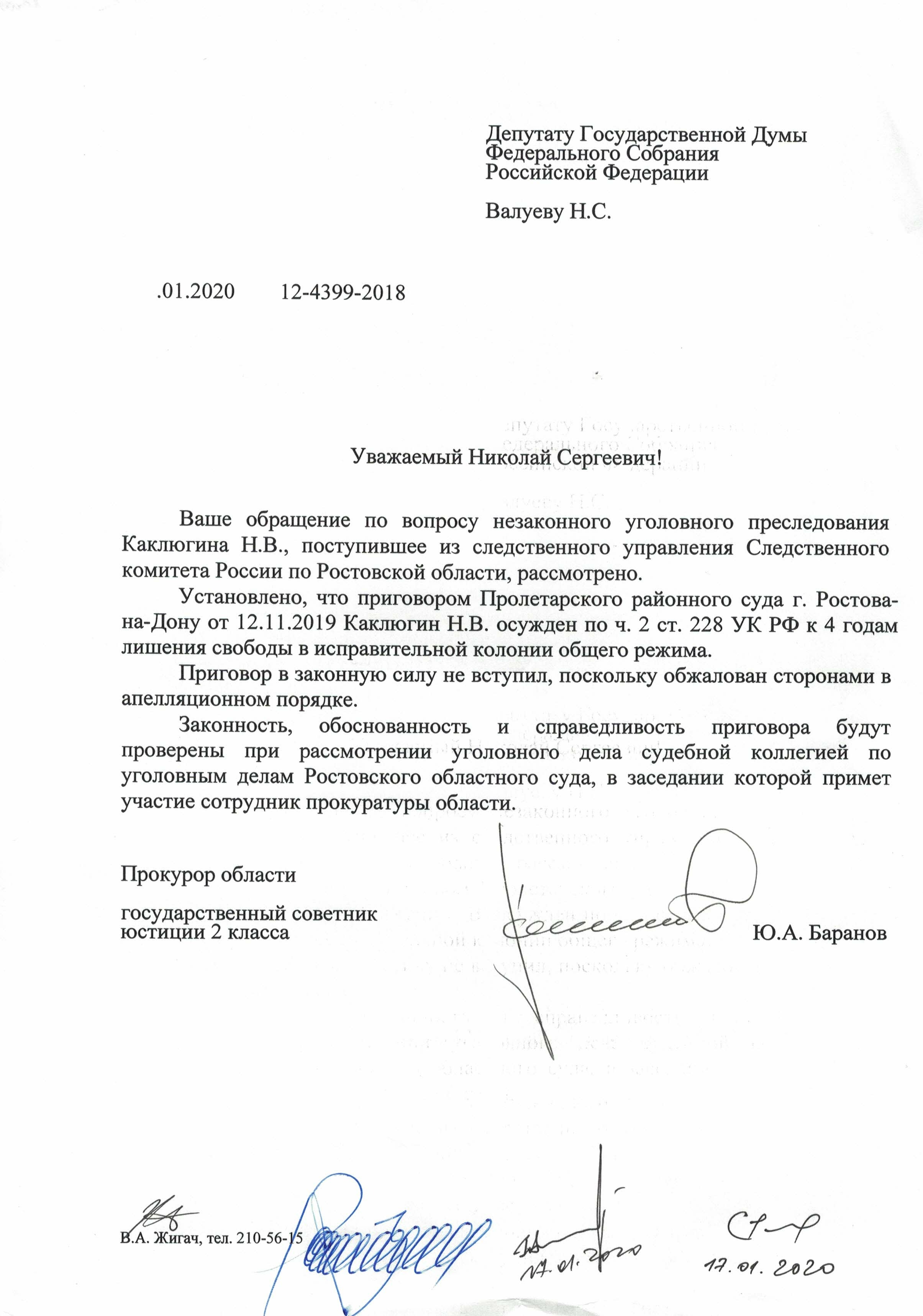 По завершению судебного заседания краснодарского 4-го Кассационного суда, когда было озвучено это парадоксальное по своей сути решение, у меня вырвалось лишь: «Где здесь было правосудие?» Чуть позже ситуацию прокомментировали на православном интернет-портале «Русская народная линия», задав аналогичный вопрос: «Есть ли в Росси правосудие?»: https://ruskline.ru/news_rl/2020/11/09/est_li_v_rossii_pravosudie Когда нам отказала абсолютно безразличная ко всему этому абсурду вокруг моего дела тройка судебно-уголовной коллегии Ростовской областного суда в рамках рассмотрения нашей апелляционной жалобы, у меня вырвался закономерный возглас: «Где же ваша совесть?!». Расшифровка всей фантасмагорической картины, описание каждого персонажа из этого безучастного к судьбам безвинно страдающих соотечественников по сути своей обвинительного трио с дополнительным присутствием от гособвинения в лице представителя Ростовской областной прокуратуры, промолвившего лишь несколько невнятных слов, что он считает меня виновным и моя вина абсолютно доказана за что я подлежу изоляции от общества на десять лет в ИК строгого режима, хотя ранее ныне покинувший свой пост прокурор Ростовской области Ю.А. Баранов заверял по-прежнему способствующего справедливому рассмотрению моего дела депутата Госдумы Николая Валуева (подробнее его позиция здесь: https://www.stav.kp.ru/daily/26995/4056616/), что на апелляционном заседании прокурорским работником будет учтена объективная позиция, изложенная в депутатском запросе, прикрепленном к моему обращению с указанием массы фальсификаций в моем деле: https://ruskline.ru/tema/obwestvo/delo_kaklyugina
