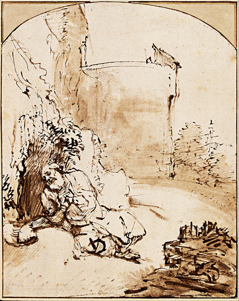 Пророк Иона перед стенами Ниневии, рисунок Рембрандта, около 1655 года