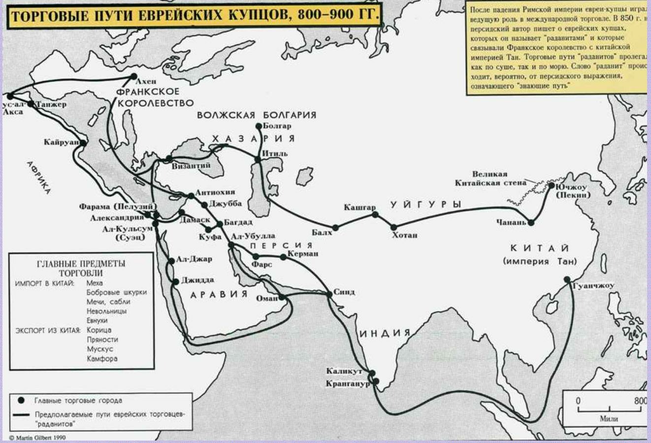 В Чаньани − на северо-западе, и в Кантоне − на юго-востоке Китая возникли крупные колонии-сеттльменты, по-современному − офшорные зоны, преимущественно с иудейским населением. Со стороны правительства империи Тан − режим наибольшего благоприятствования. Вместе с рахдонитами в этих офшорных зонах жили торговцы из Согдианы и других стран. Поскольку политического значения деятельность последних не носила, то и интереса для русской разведки, кроме как один из каналов агентурного внедрения, они не представляли.