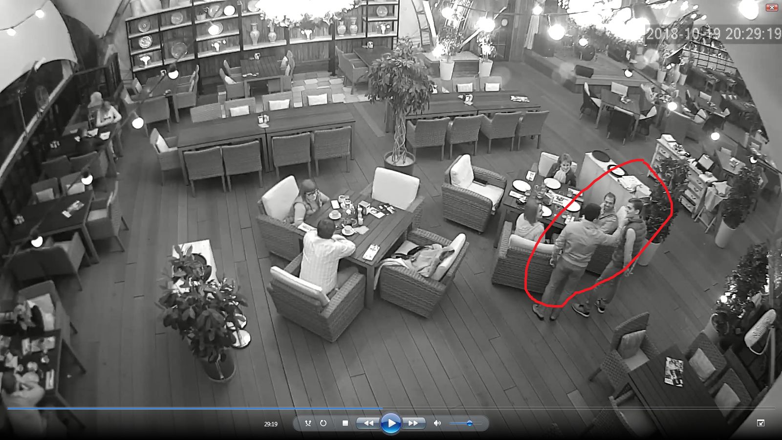 В апреле 2020 года на интернет-портале «Национальный медиа-союз» опубликована стенограмма речи одного из адвокатов (Евдокимова В.Н.). Это, так сказать, итог по всем материалам дела и незаконно, необъективно предъявленному обвинению. Очень емкая, системная, впечатляющая речь. Как верно выразился в ней адвокат Евдокимов, - объективно и по существу по этому делу в отношении эксперта-психиатра и нарколога может быть только оправдательный приговор. Далее, в тот же день 07.11.2019 г. была еще речь адвоката Пешикова П.С., в которой он указал на огромный ряд серьезных нарушений и нестыковок дела, а также привел разбор видео-записи с камер наблюдения в ресторане «Ялла» перед задержанием борца с сектами и за здоровый образ жизни, где абсолютно очевидно, что за ним наблюдали, следили и явно, как говорят, «пасли». [На фото ниже видно, как к группе за соседним столиком, наблюдавшей за Николаем Каклюгиным, подходит пятый человек и один из наблюдавших встает из-за стола и за подбородок поворачивает голову вновь подошедшего в сторону Николая Каклюгина, показывая таким образом на Николая].