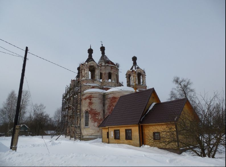 Село Микшино. Здесь два храма – большой Троицкий и малый Сретенский. В этом селе родился и провел юные года известный подвижник игумен Никон (Воробьев), о чем свидетельствует памятная доска на Сретенской церкви. На само Сретение приехать не получилось, но служба (утреня в субботу вечером) прошла в период попразднства этого праздника. Озадачил старосту просьбой подготовить в большом храме один из приделов для совершения на Троицкой неделе первой Литургии.