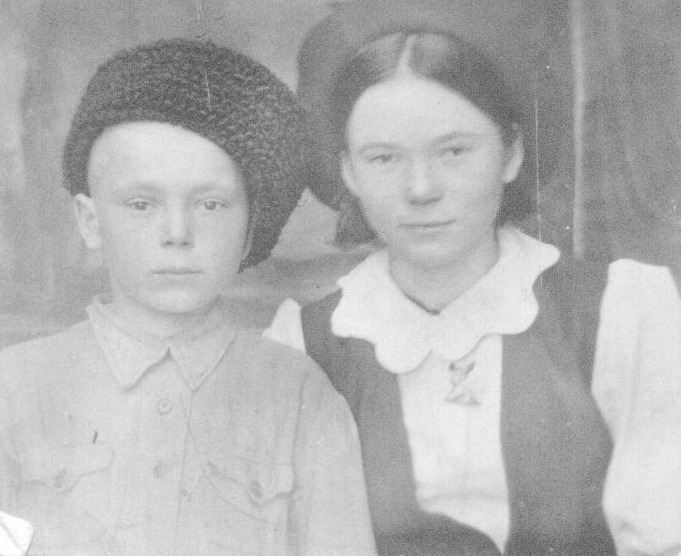 На одной фотографии мы были сняты с нею вместе. Она, простоволосая, в белой кофточке с круглым воротником-воланом и чёрном сарафане с широкими лямками. А я – в косоворотке и отцовской каракулевой кубанке, круглой и упругой, как обечайка сита, явно большой для меня, неуклюже боком висящей на моей стриженной под нуль голове. У Вали было уже нездоровое, чуть припухлое, словно спросонья, лицо, в особенности веки, с тонкими черными бровями над ними, и это придавало её облику что-то восточное, татарское. Но всё равно она была красива юной, чистой красотой деревенской девушки, и карие глаза её сияли молодым блеском.