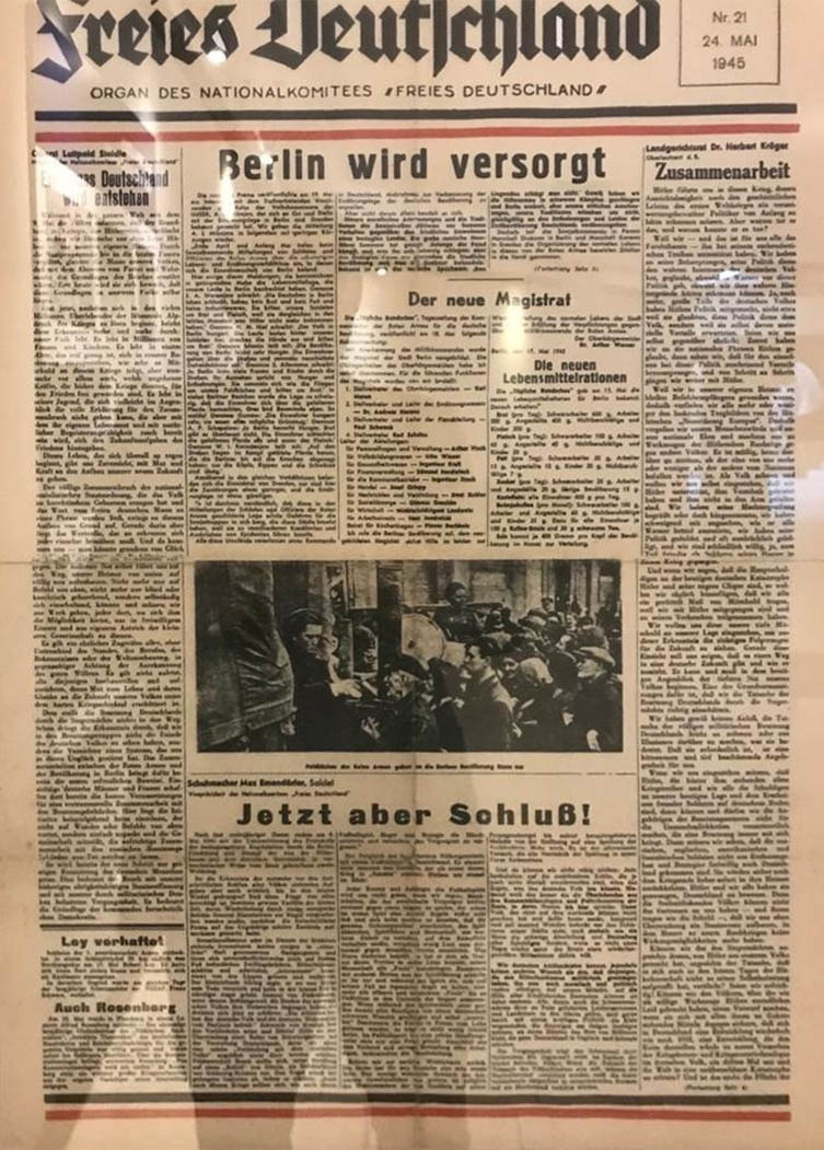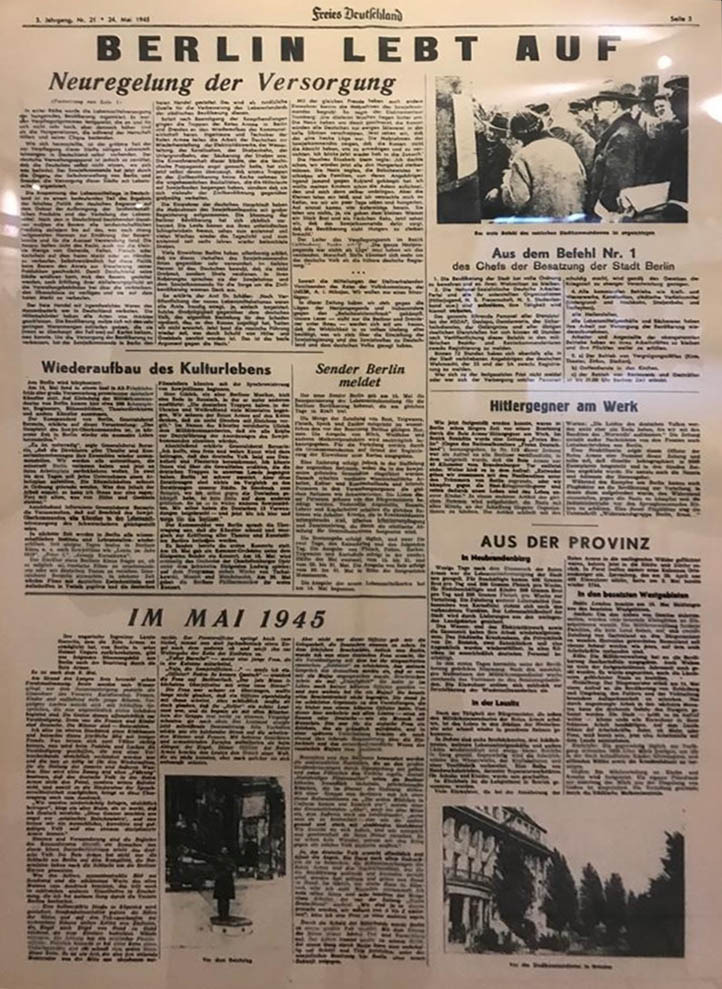 -15 мая вышла в свет первая берлинская газета – орган советских оккупационных властей на немецком языке «Тэглихе рундшау» («Ежедневное обозрение»).