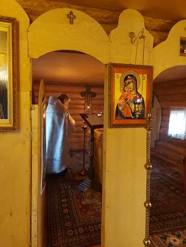 На следующий день у меня начались сильные головные боли – не помогали никакие таблетки. Помимо переутомления сказывалось поспешность в подготовке поездки – думал – май, тёплое время года, не взял тёплую скуфью. Погода, однако, была дождливой и холодной, много времени провёл на открытом воздухе и в холодных храмах. Вечером под Радоницу буквально вполз в храм на службу. После вечерни согласно Уставу служилась панихида, затем утреня. Пожилые супруги, живущие в моём домике в деревне, поехали на машине оповещать о службе местных жителей. По первости это делалось несколько топорно – эмоциональные прихожанки вечером стучали в окна деревенских домов и радостно – настойчиво призывали: «На молитву!» Представляю реакцию местных жителей деревни - карелов – охотников и рыболовов. Для них десант необычных людей в косоворотках и сарафанах воспринимался, наверное, как высадка инопланетян. Возникла ещё такая ассоциация: талибы, придя к власти в Афганистане, население, отвыкшее от регулярной молитвы, по пятницам палками сгоняли в мечети.