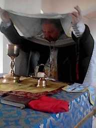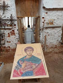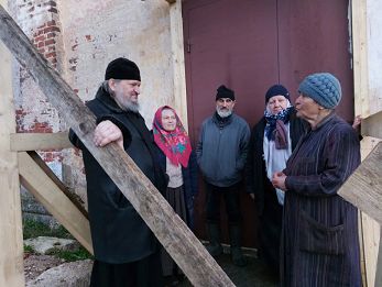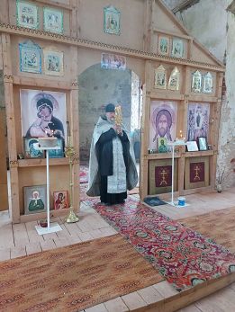 Утром, на Литургию, как и предполагала староста, пришло всего трое местных. Приехали рабочие – после Радоницы должны начаться реставрационные работы. В связи с этим я на сугубой ектенье произнёс сугубые прошения о помощи в предстоящих трудах. В аварийном состоянии правая и левая стороны главного придела храма: с правой стороны – две огромные дыры в крыше; с левой не сегодня - завтра рухнет крыша. Если рассуждать с сугубо рациональной точки зрения, то мы сделали невероятно глупые вещи – настелили пол в главном алтаре, установили там престол и жертвенник. Летом изготовим иконостас, и где- то ближе к Успению планируем совершить первую Литургию. Ещё в начале 90-х годов храм был приговорён, как не подлежащий восстановлению. Службы прекратились лет 10 назад, особенно после того, как храм ограбили, разрушив при этом маленький алтарь. Мы не смогли смириться с этим приговором, и взялись за, казалось, обречённое на неудачу дело. И вот уже в течение ряда лет в храме, в двух приделах в трапезной его части, регулярно проходят службы. Мы верим, неоднократно в этом убеждались, что на «дрожжах» молитвы дом Божий будет восстановлен.