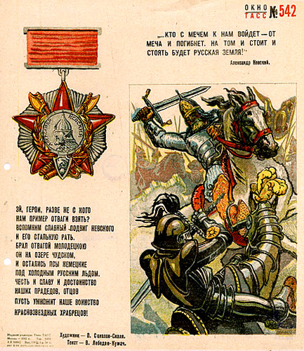 Окно ТАСС № 542. Художник П. Соколов-Скаля, текст В. Лебедев-Кумач. Орден Александра Невского. Июль 1942 года