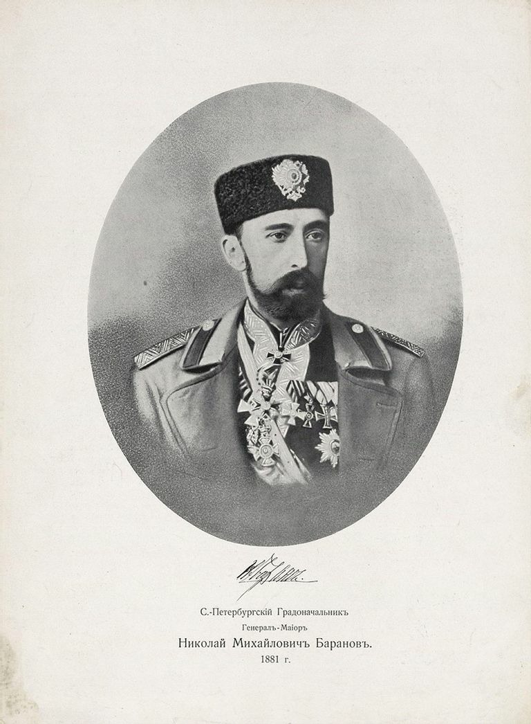 Так он вначале рекомендует вместе с К.П. Победоносцевым на пост петербургского градоначальника генерала Николая Михайловича Баранова (1836-1901), исполнявшего должность Ковенского губернатора, ‒ героя знаменитого боя вспомогательного крейсера «Веста» под его командованием с турецким броненосцем «Фехти-Буленд» во время последней войны.