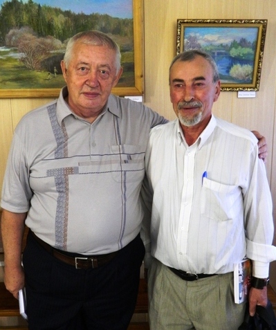 Писатель Валерий Кириллов с поэтом Геннадием Сазоновым в Центральной библиотеке г.Андреаполя. 2013 г.